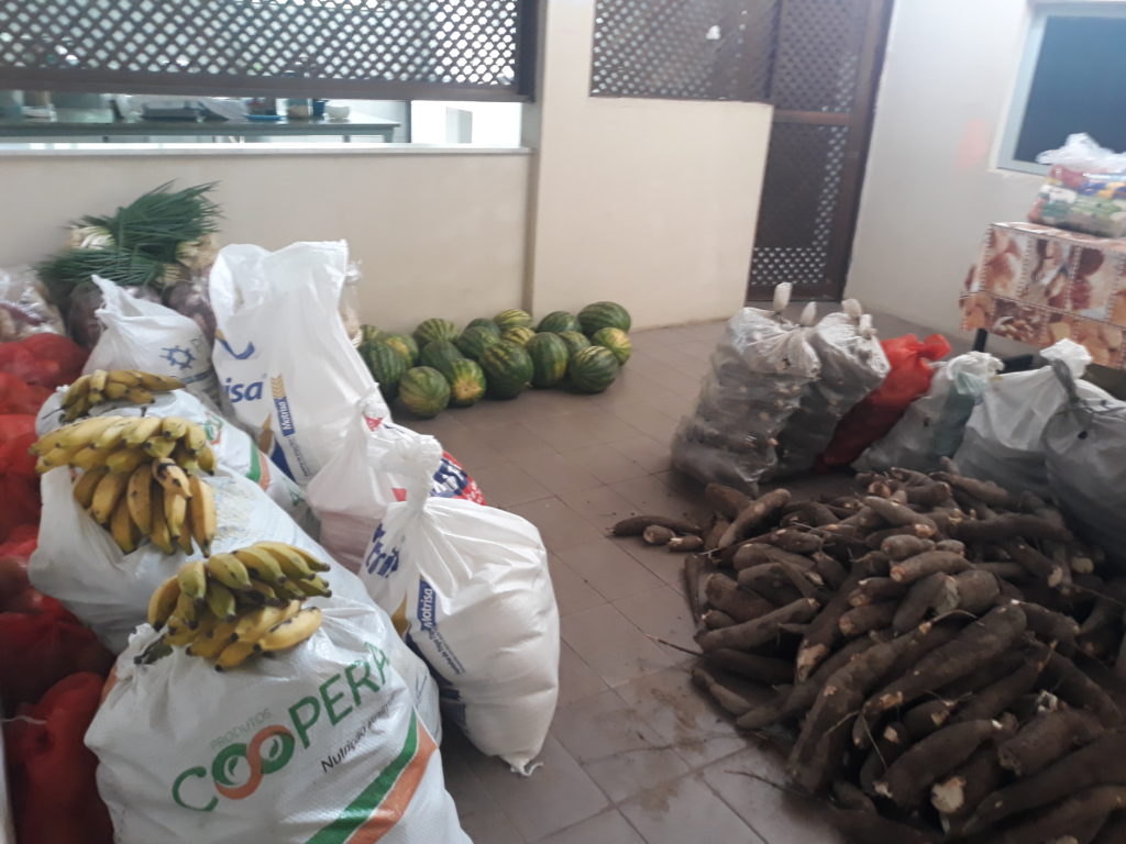 Por meio do Programa de Aquisição de Alimentos, recebemos doações mensalmente da colheita de: frutas, raízes e farinha. As doações são destinas aos nossos projetos, mas neste período de pandemia, enquanto nossas atividades com as crianças e adolescentes estão suspensas, no dia 08/05 destinamos estas doações para mais de 50 famílias das crianças matriculadas em nossos Projetos.
